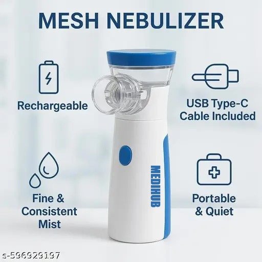 Advanced Mesh Technology for Fast Relief Medihub portable nebulizer uses cutting-edge mesh technology to deliver fine mist particles for deep lung absorption, ensuring quick and effective relief from asthma, cough, cold, or other respiratory issues. Silent Operation Ideal for Kids & Night Use Designed for ultra-quiet performance, this nebulizer operates silently perfect for children, light sleepers, and night time use without disturbance.